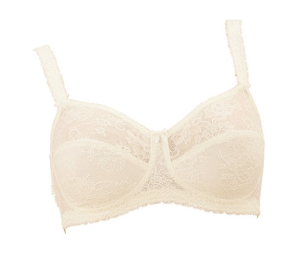 The cups of this bra are made of lace and therefore have a particularly light look. With the stretch upper cup the soft bra moulds to different cup shapes and are particularly comfortable to wear. The straps are decorated with an attractive lace band through to over the shoulders. The extremely comfortable soft bra with soft cups features lace at the side.