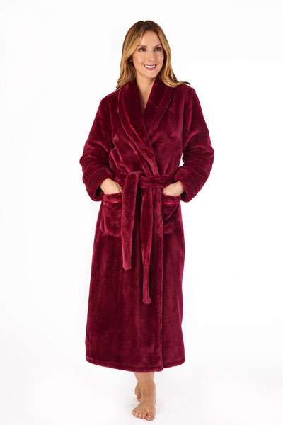 This luxury flannel fleece housecoat is designed in a wrap style with matching belt to allow comfort and ease with dressing. It is finished with a large shawl collar with a matching solid satin trim to the collar and cuffs. Soft, cosy and perfect for extra warmth during the colder months.