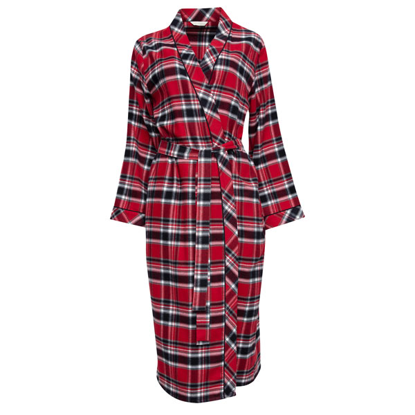 There’s nothing cosier than check nightwear in the winter. The Windsor dressing gown is made from super cosy, brushed 100% cotton for a comfy, warm feel and is trimmed with black modal. In a wrap-front, kimono style, the dressing gown fastens with a self-fabric belt and has two pockets. Wear it with the matching and coordinating pieces in the Windsor range to cover up when temperatures tumble.