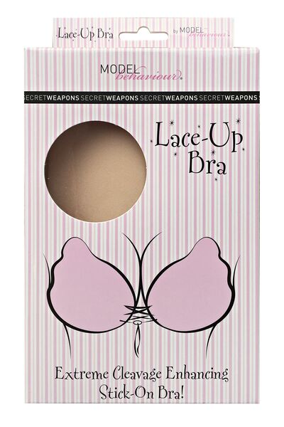Create va-va-voom cleavage with the stick on Lace Up Bra! Backless, strapless and super adhesive, the extreme cleavage Lace Up Bra is lightly padded for ultimate lift, shape and contour.