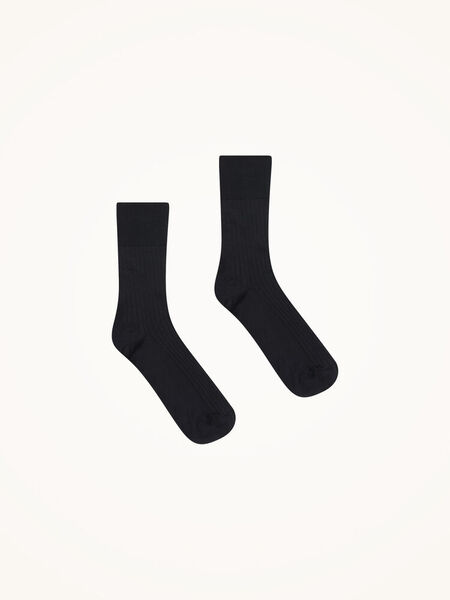 An elegant, ribbed knit elevates these essential cotton blend socks. The classic design is suitable for both men and women. Soft, knitted-in cuffs complete the look.