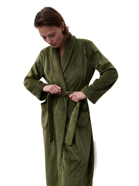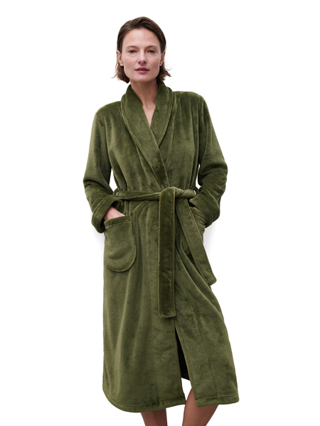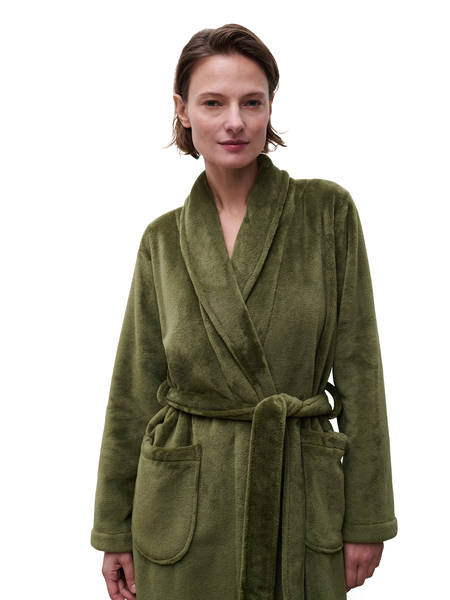 Your must-have for cosy Autumn nights, the Teddy robe in Winter Moss. This super soft robe features a lapel, two pockets and tie waist.