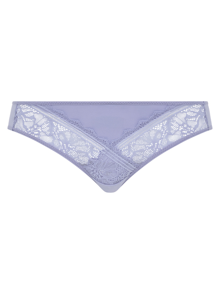 A bikini brief style from the Chantelle Floral Touch range. The main fabric is soft and opaque, with a semi-sheer lace section at the front. The fabric has stretch for a comfortable fit. Thistle is a lovely light shade to wear into the summer months.