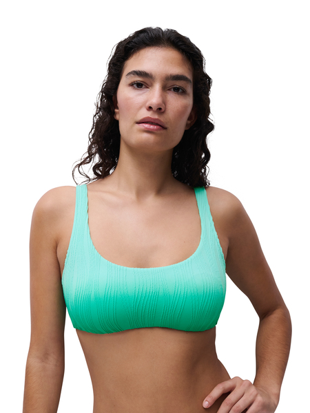 Stretchy, comfy material and easy sizing makes this range a must-have for summer. This bikini set gives a modern fuss free look. The square neckline bikini top has non-adjustable straps. It is paired with a high-waist bikini brief which gives good coverage. The wirefree bikini top has removable pads, and a textured look to the fabric. The bikini bottoms come in one size fits all, adapting to your individual shape.