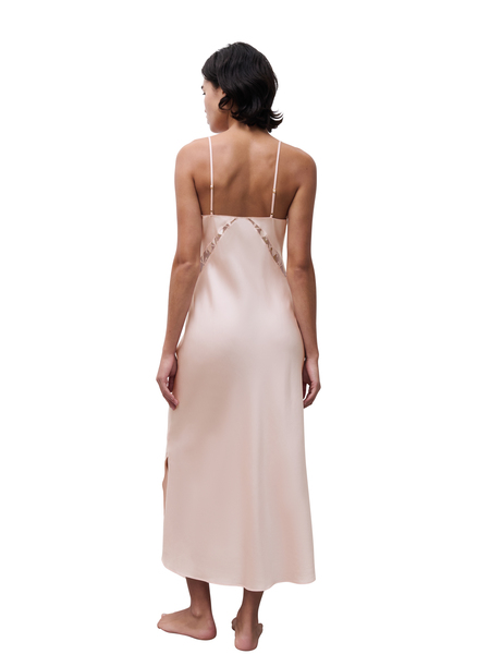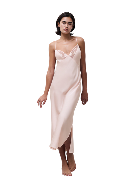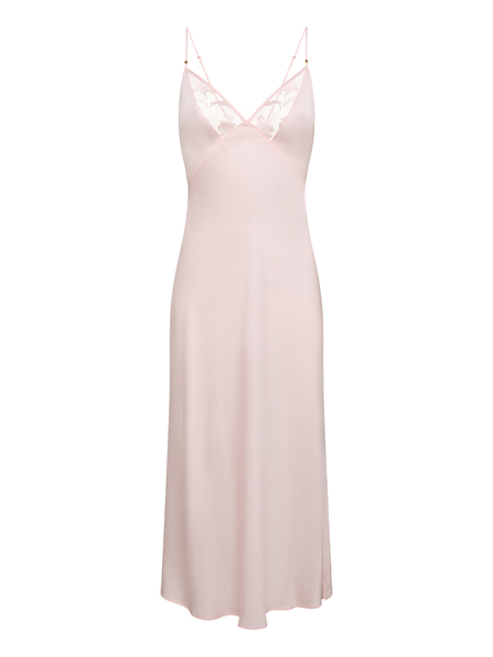 A pretty long length nightgown with lace details in a soft Taffeta Pink shade.
