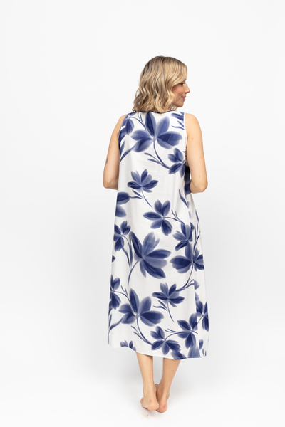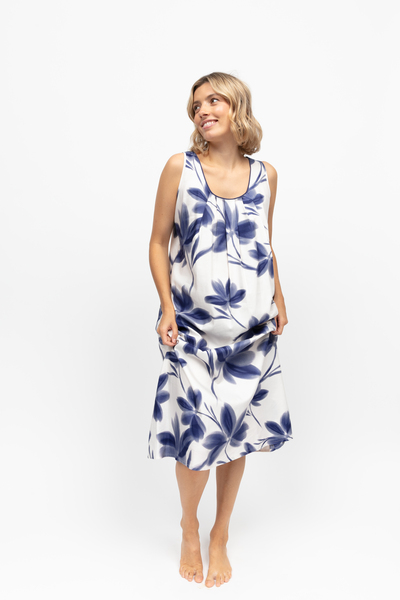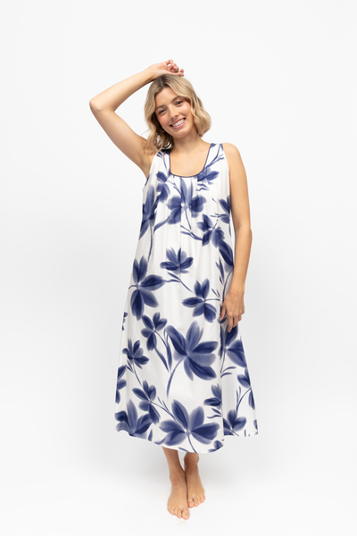 Our downtime hours are precious, and they deserve to be treated as such. The Cyberjammies Indigo Floral Print Nightdress has a blend of 60% cotton and 40% modal feeling like a soft exhale against the skin. It’s light and breathable enough to help you transition from the hum of the day’s hustle into the slower, more thoughtful rhythm of the evening. Painted in a scene of navy petals blooming against a crisp white background. Wide shoulder straps and a curved neckline create a balanced fit, while front pleats allow the fabric to fall into its flattering, natural line.