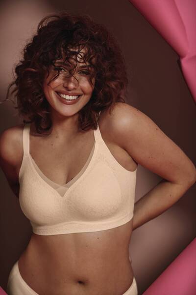 Comfy yet feminine, the Essentials Smart bralette strikes the perfect balance. A modern, seamless design is paired with a pretty lace covering. In a gentle pink shade, 'smart rose' it can be paired with the Anita Essentials knickers in the matching colour.