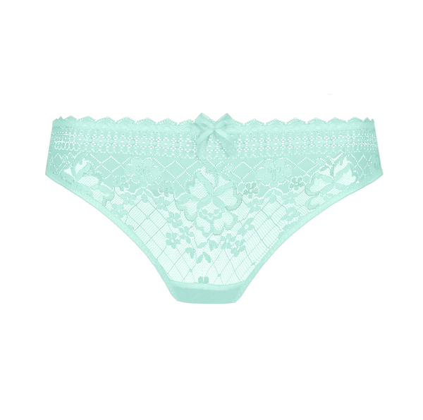 This summer, let yourself be charmed by Melody Aqua — the fresh new shade of Empreinte’s iconic seamless range. The Melody brief is a key shape in the collection. The pretty lace across the front ensures a seductively glamorous appeal. The ultra soft tulle at the back combines comfort with simplicity.